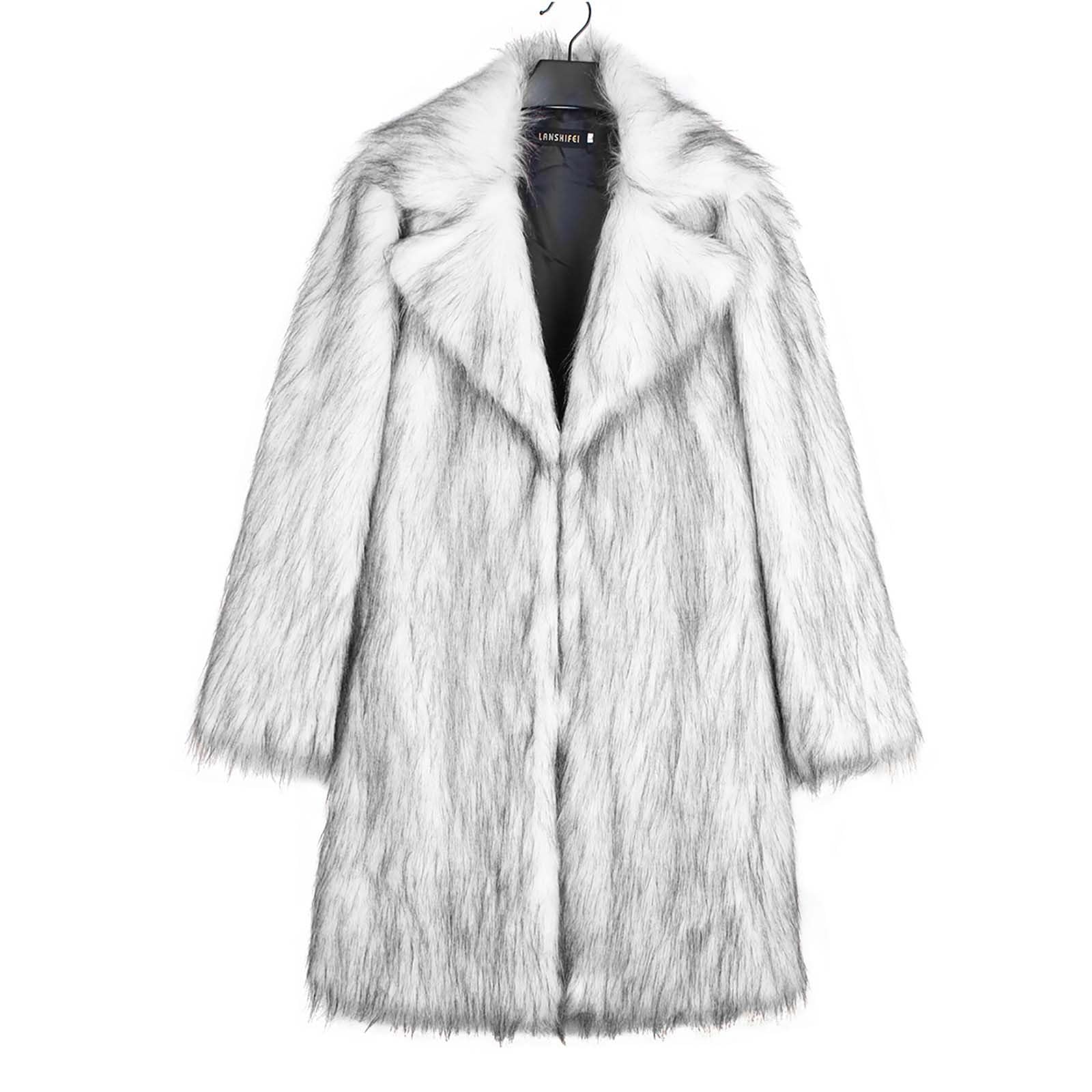 Womens Long Faux Fur Coat Oversized Loose Winter Jackets A02-gray