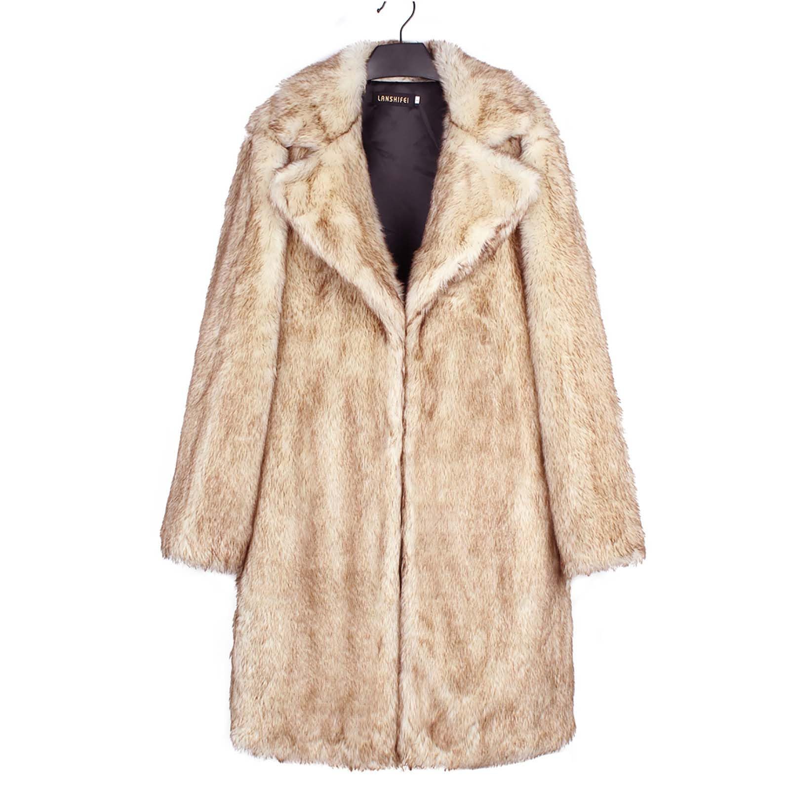 Womens Long Faux Fur Coat Oversized Loose Winter Jackets A02-khaki
